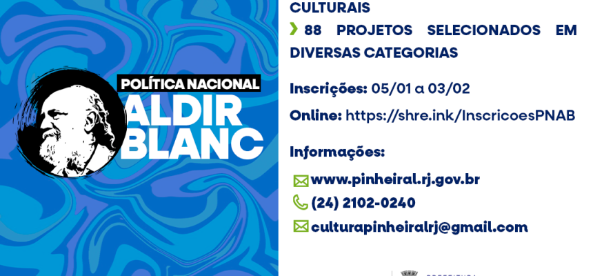 A Prefeitura de Pinheiral, por meio da Secretaria Municipal de Cultura e Turismo, lançou o Edital de Chamamento Público, voltado à seleção de projetos culturais que receberão recursos da Política Nacional Aldir Blanc de Fomento à Cultura (PNAB). A iniciativa tem como finalidade fortalecer o setor cultural do município, incentivar a produção artística local e ampliar o acesso da população às diversas manifestações culturais.
